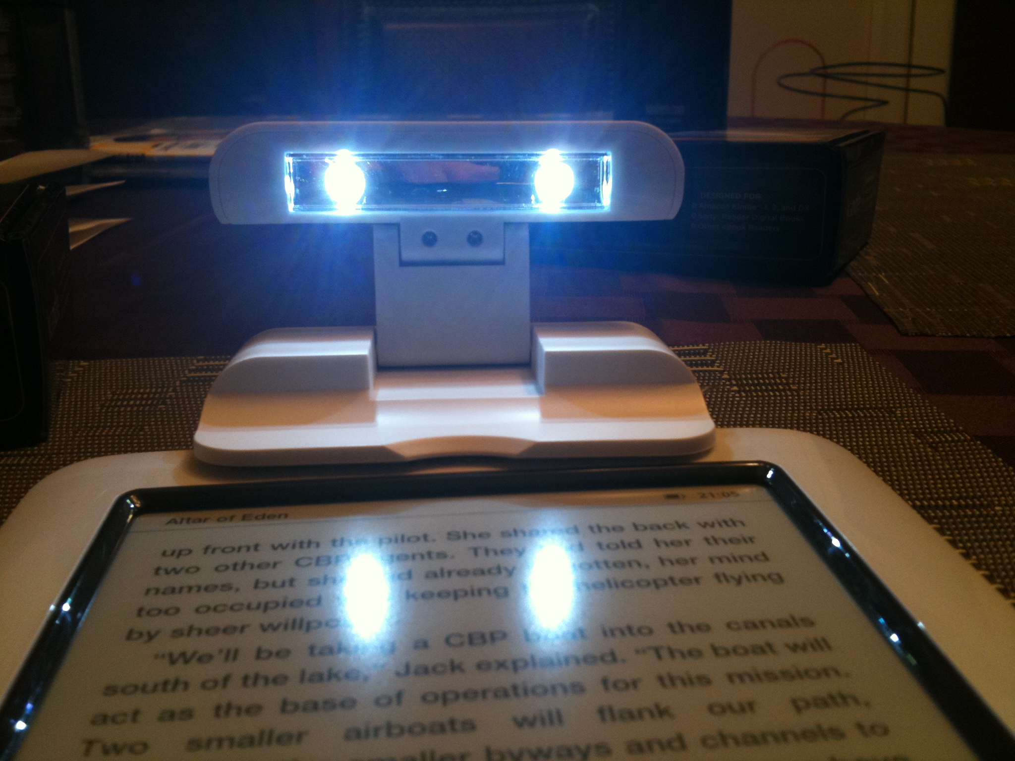 The Kandle provides more than enough light to read in complete darkness. The two rotating arms allow you to customize the angle of the light to eliminate glare.